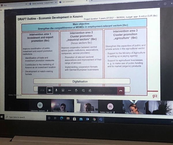Qëllimi i këtij takimi virtual, ishte shqyrtimi mundësive për vendosjen e bashkëpunimit në mes të MZHR-së dhe Giz-it, në një periudhë afatmesme tri vjeçare (2021-2024), në kuadër të projektit “Krijimit të punësimit përmes nxitjes së eksportit (CETEP)’’.
