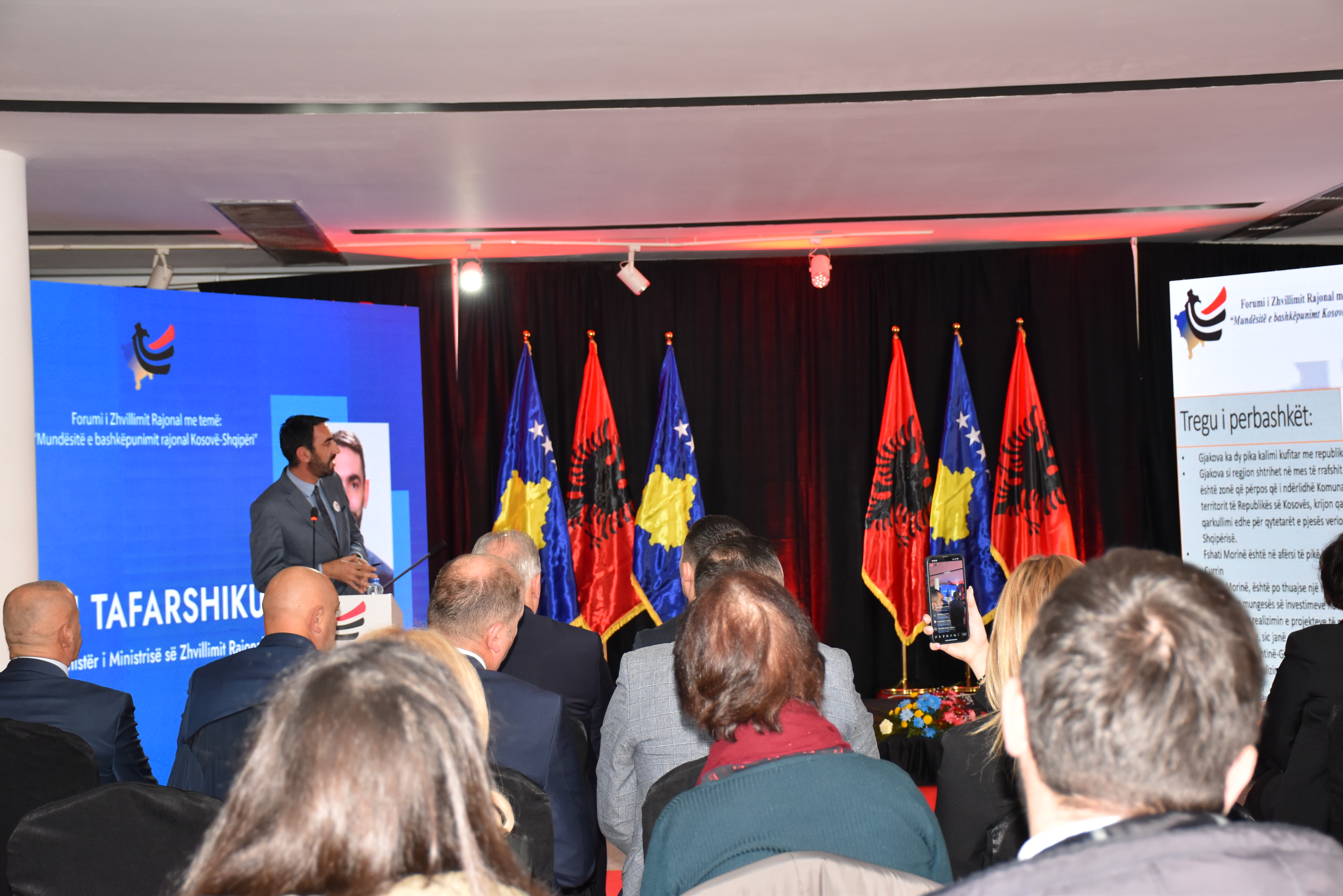 Forum je otvorio ministar Ministarstva regionalnog razvoja g. Fikrim Damka, koji je poželeo dobrodošlicu svim učesnicima i istakao da je čast da se danas obratim ovom časnom forumu i osvetlimo izuzetne mogućnosti koje se pružaju u promociji regionalne saradnje između Kosova i Albanije. Regionalni razvoj preko granica može se postići kroz saradnju u zajedničkim infrastrukturnim projektima, trgovinskim sporazumima i investicionim inicijativama koje mogu stvoriti simbiotski odnos, od koristi i Kosovu i Albaniji. Stvaranje jakog regionalnog tržišta može privući strane investicije i stimulisati ekonomsku diversifikaciju, što će dovesti do održivog razvoja.