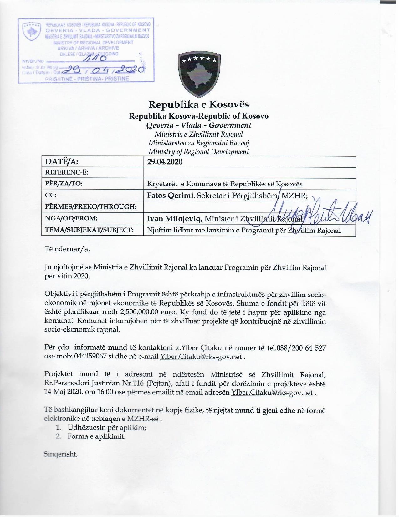 Ministar Milojević ohrabruje opštine da pripreme nacrte predloga prema kriterijima navedenim u pozivu za dostavu predloga projekata.