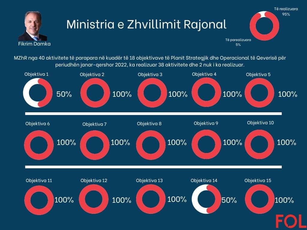Zahvaljujući radu i zalaganju svih zaposlenih, Ministarstvo regionalnog razvoja je procijenjeno da je realizovalo 95% aktivnosti predviđenih Strateškim operativnim planom Vlade za period januar-jun 2022. godine i procjenjuje se da je prvo ministarstvo sa najboljim učinkom koji je realizovalo planove sa ovim visokim procentom.