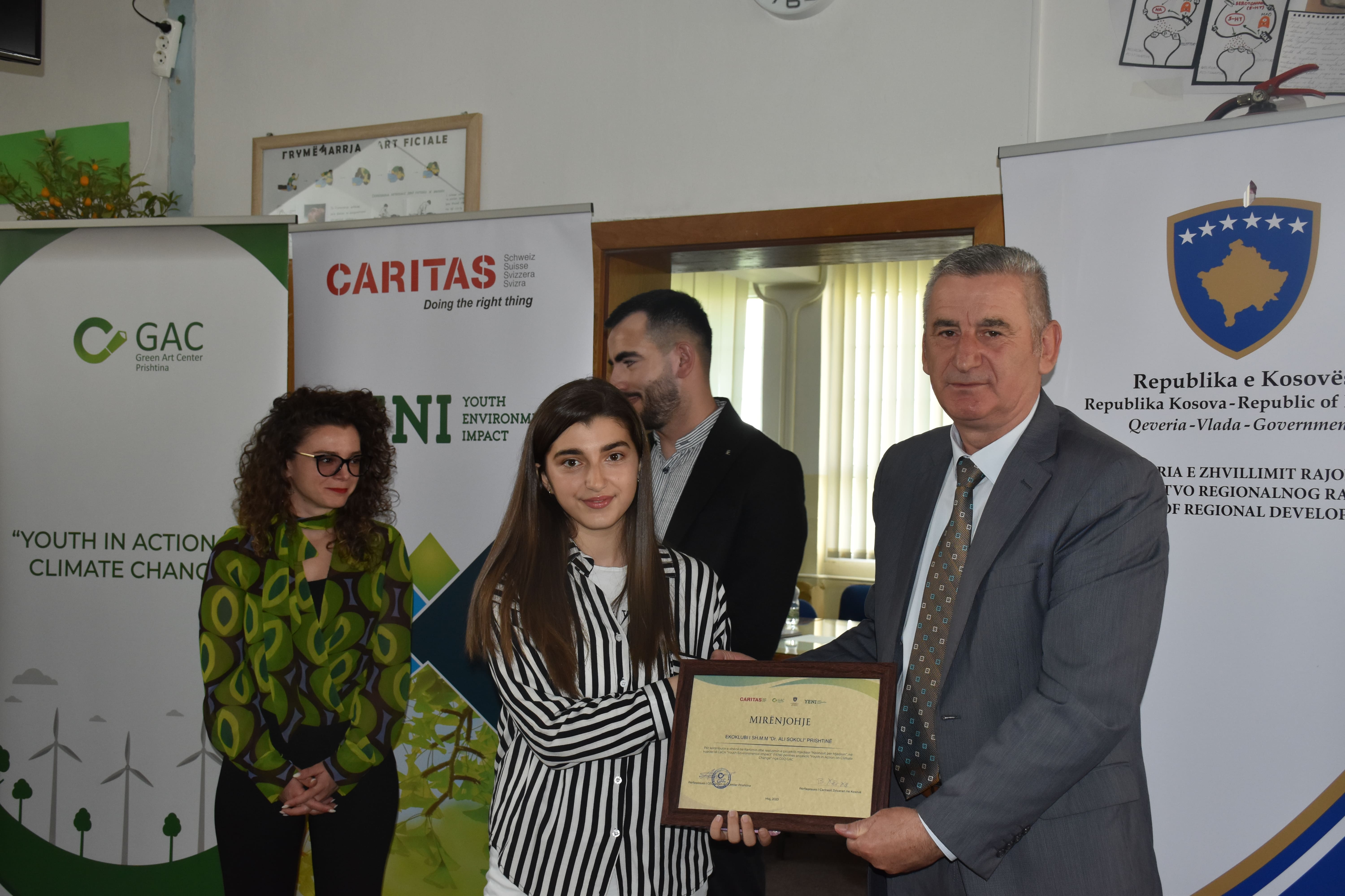 Dana 17.05.2023, u okviru IENI projekta koji sufinansiraju Ministarstvo regionalnog razvoja i kancelarija Švajcarskog Karitasa na Kosovu, Eko klub „IENI“ Srednje medicinske škole Dr. Ali Sokoli je u saradnji sa implementacionim partnerom Green Art Centrom razvio i realizovao ekološki projekat „Studenti za životnu sredinu“