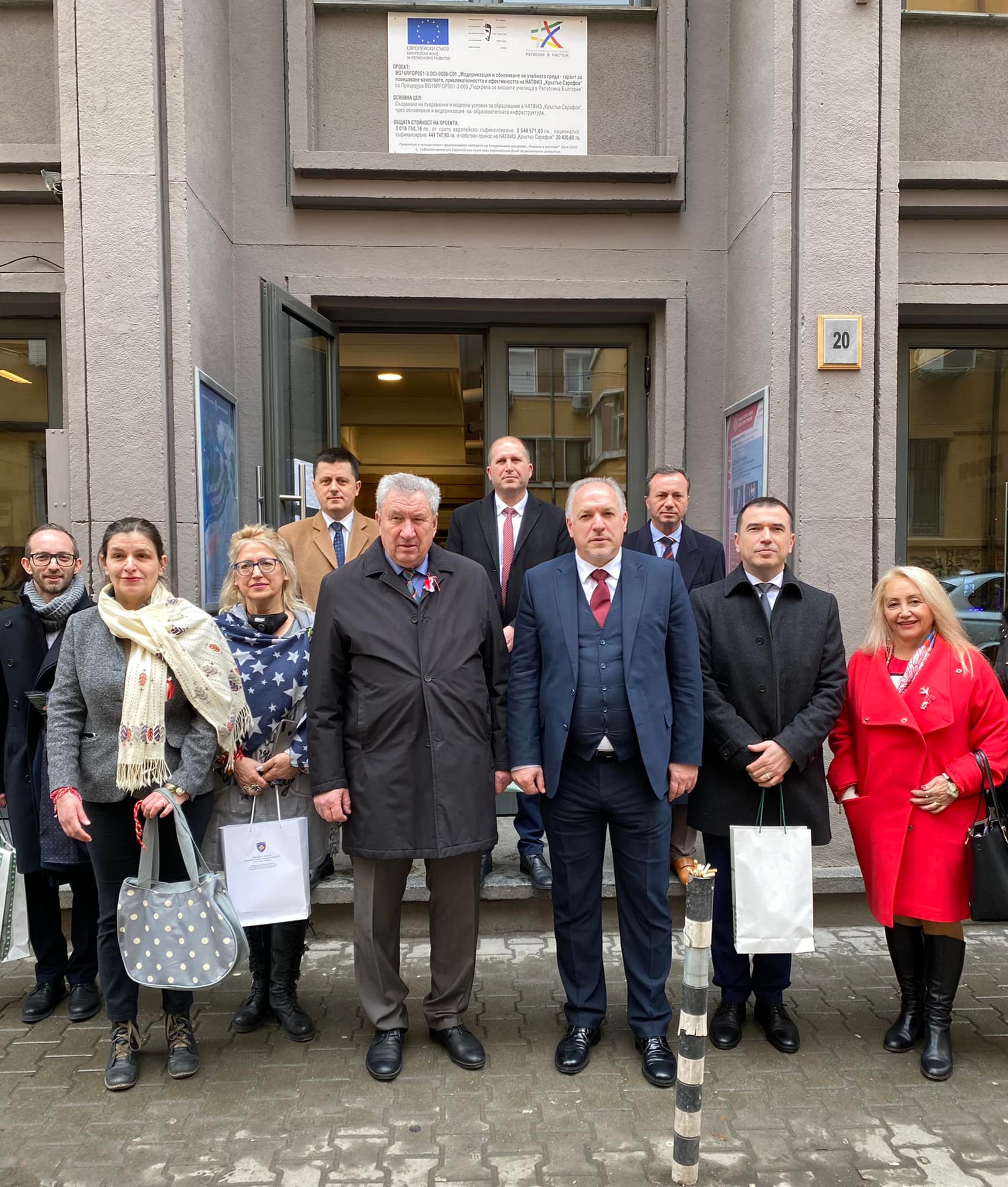 Prva poseta delegacije bila je Nacionalnoj akademiji za pozorišnu umetnost i film „Krastjo Sarafov“ (NATFA), koja je prva srednja pozorišna škola u Bugarskoj u Sofiji, primio je prorektor Vladimir Kuzmanov gdje su izbliza vidjeli projekat sa pod nazivom „Modernizacija i renoviranje okruženja za učenje, garant poboljšanja kvaliteta, atraktivnosti i efikasnosti“ finansiranog iz fondova EU u vrednosti od 1,5 miliona evra i sufinansiranog od strane bugarske vlade.